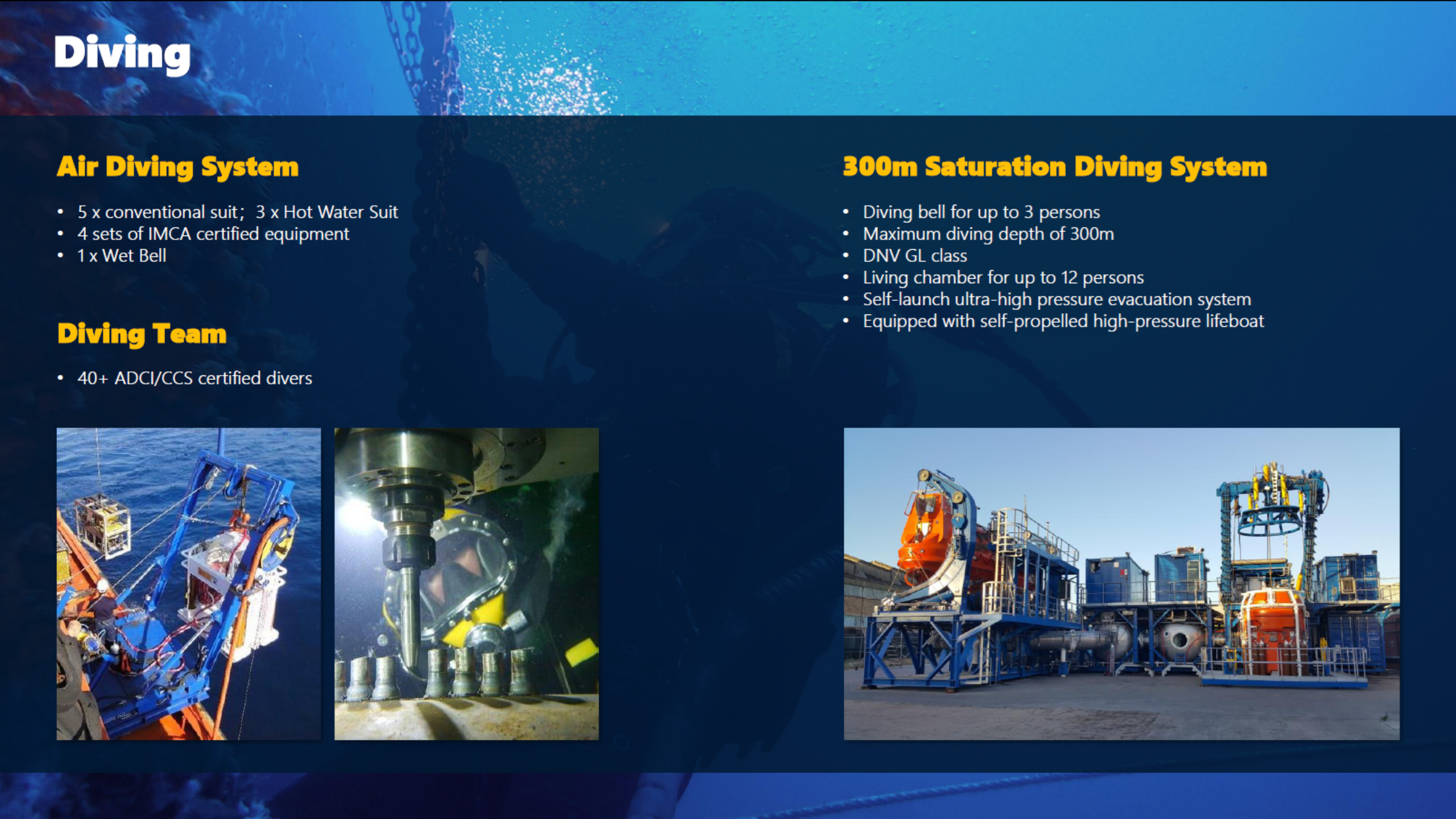We offer comprehensive diving support services with highly trained dive teams and equipment for underwater inspection, repair, and construction. Our diving operations are managed to the highest safety standards, enabling us to undertake subsea maintenance, pipeline repairs, and other critical underwater tasks with precision.