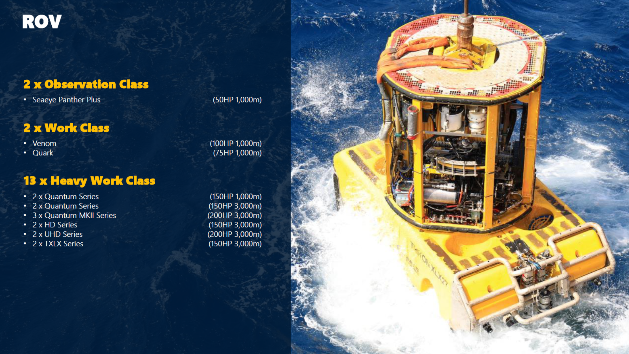 Synergy Offshore and Marine Consultant Pte Ltd. provides specialized ROV (Remotely Operated Vehicle) support services for offshore operations, offering advanced underwater inspection, maintenance, and intervention solutions. Our ROV capabilities enhance safety and efficiency in subsea environments, ensuring precise execution of complex tasks in deep and shallow waters.